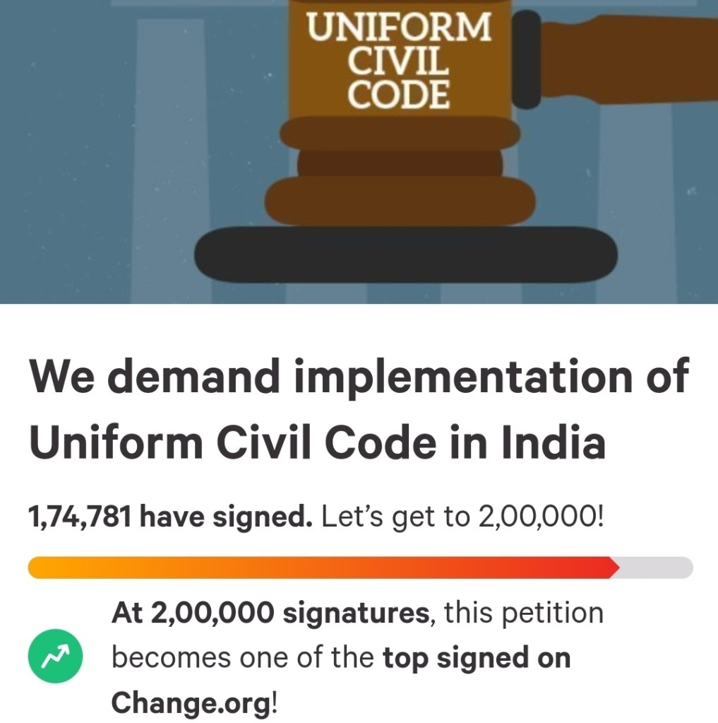 Almost 2 Lakh Plus Petition Signed For Uniform Civil Code Implementation Make Sure You All Sign For Uniform Civil Code Petition & Vote For It On UCC Form UNIFORM CIVIL CODE SIGNED PETITION Sign Petition & Vote